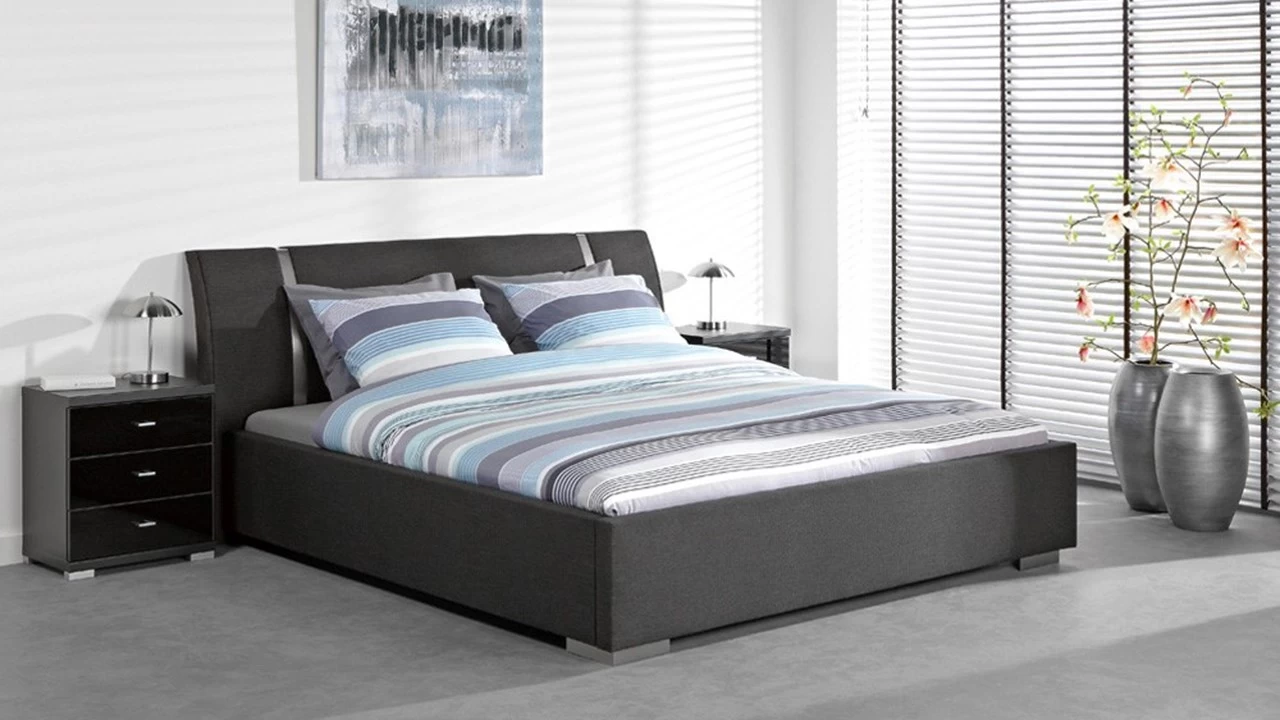 Een chique hoteluitstraling in je slaapkamer met bed Pato. Dit donkergrijs gekleurde stoffen bed straalt door zijn eenvoud met een aantal kleine zilverkleurige details in het hoofdbord en de poten. Door het strakke design misstaat dit bed in geen enkele slaapkamer.
