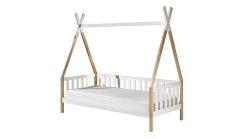 Je kunt het Tipi bed op veel verschillende manieren inrichten. Met gordijnen en een slinger creëer je een huiselijke en veilige sfeer. Het ontwerp van het bed maakt het mogelijk om de kamer van je kind op een nieuwe manier in te richten, omdat je van alle kantenhet bed in kunt. Het bed is gemaakt van massief grenen.