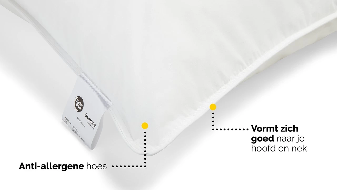 Hoofdkussen Bamboe is antiallergisch en antihuisstofmijt. Zo verzeker je jezelf van een hygiënisch slaapklimaat en een gezonde nachtrust.