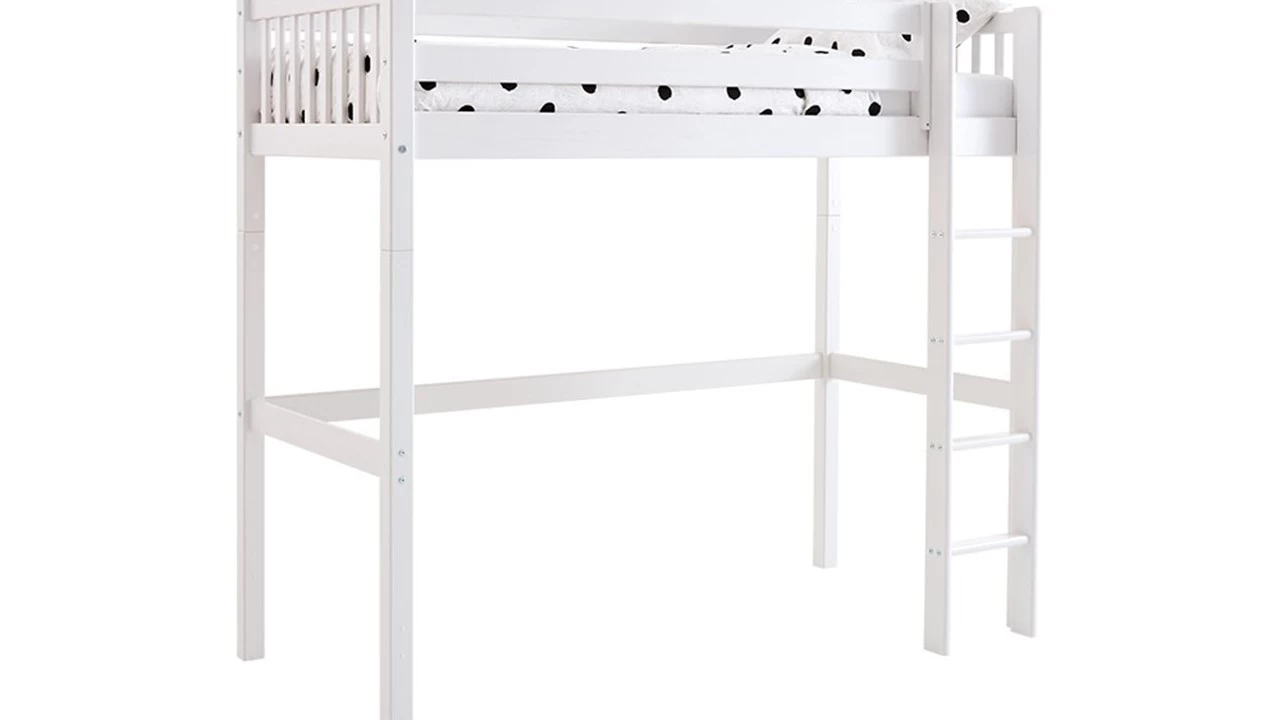 Deze witte eenpersoons hoogslaper Kris van Flexworld heeft een hoofd- en voetbord met spijlen voor een stijlvolle uitstraling. Voor extra veiligheid is de hoogslaper uitgevoerd met een degelijke ladder en uitvalbeveiliging aan de zijkant. Het is dus niet alleen geschikt voor oudere kinderen, maar zeker ook voor peuters en kleuters!
