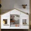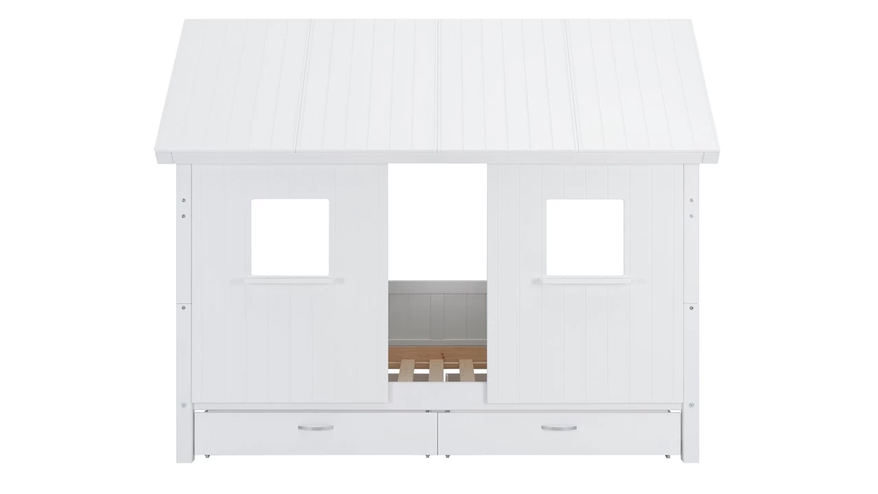 Het is altijd lekkerder slapen met een dak boven je hoofd toch? Sofabed Puck met dakframe en heel dak is een prachtig bed dat in geen enkele kinderkamer misstaat. Dit ‘slaaphuisje’ heeft sofabed Puck als basis. Het bed kenmerkt zich door de rustige uitstraling en subtiele groeven in de panelen. Met dit bed kan je kind én heerlijk slapen én kan het ideaal gebruikt worden om mee te spelen.