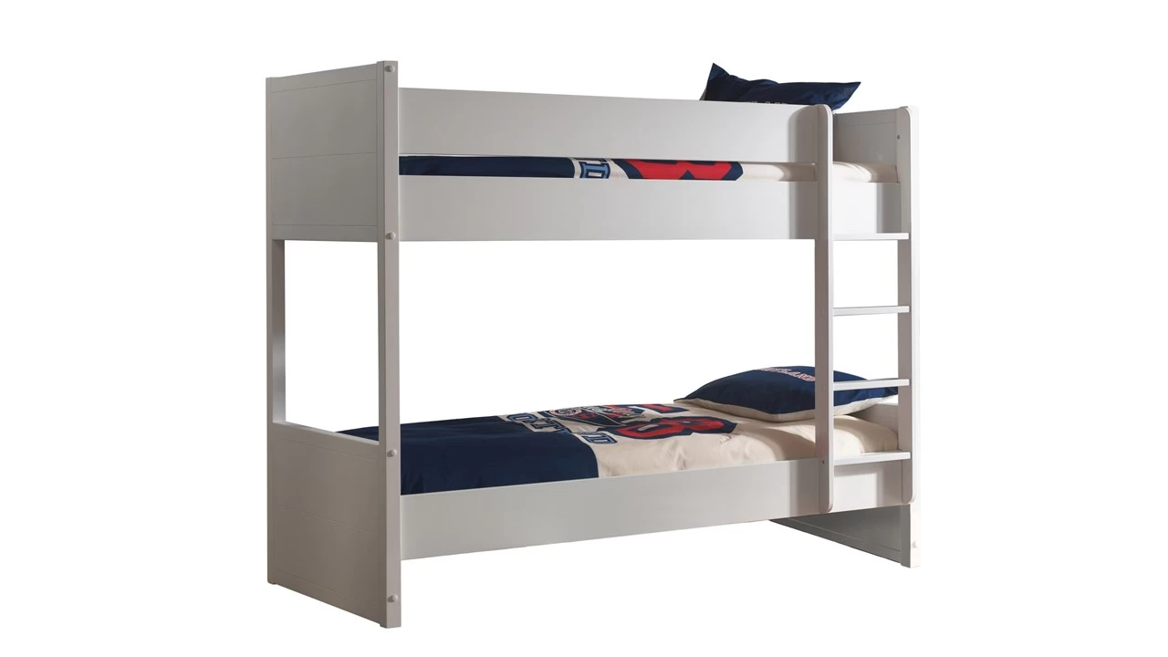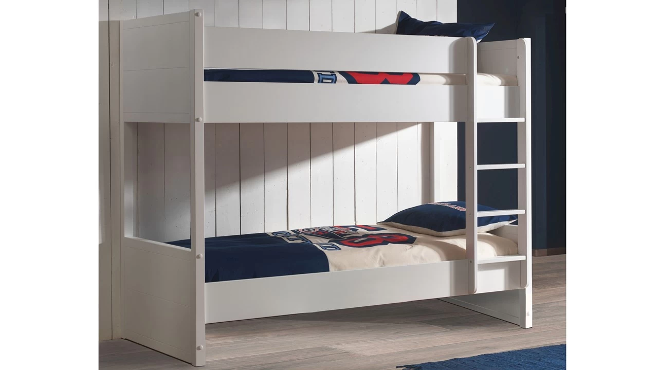 Heb je weinig ruimte in de kinderslaapkamer? Kies voor stapelbed Lara van Vipack. Je bespaart niet alleen veel ruimte, maar ook is het voor kinderen erg gezellig om in te slapen! Een eenvoudig ontwerp maar zeker zo stijlvol. Het stapelbed is gemaakt van wit gelakt MDF in combinatie met massief grenen. Dit stevige stapelbed is er helemaal klaar voor dat kinderen er lekker op gaan klimmen en klauteren. Inclusief ladder, die aan beide kanten van het bed kan worden gemonteerd. Leuk om te combineren met de andere Lara slaapkamermeubelen als uitvalbeveiliging, kast, bureau en boekenplank. Ook handig: voeg een bedlade toe en je hebt een extra slaapplek of opbergruimte.